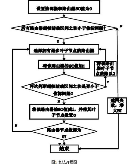 Wireless search and rescue in the search for the victims of the need to collect a large number of RSSI values to be positioned, which means that the network is very busy communication.The general network for the beacon interval (BI) and superframe interval (SD) activities are set as a fixed value, but the router or coordinator when communication busy it is possible because the transmission of large amount of data, and the activities of super frame interval and relatively small, may cause packet loss etc. thus, become the bottleneck of network data transmission. This system from the actual experiment, take a dynamic set BI and SI method, the flow chart as shown in figure 5.