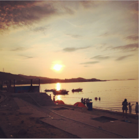 第二天一大早就要回去上班了,早起的同事们来到海边看日出了,一天一夜的旅游就要结束了,拿出手机拍下最美的风景;
