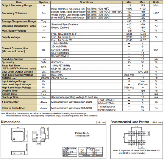 Excellent features: Micro ceramic package, highly reliable, weld, CMOS output