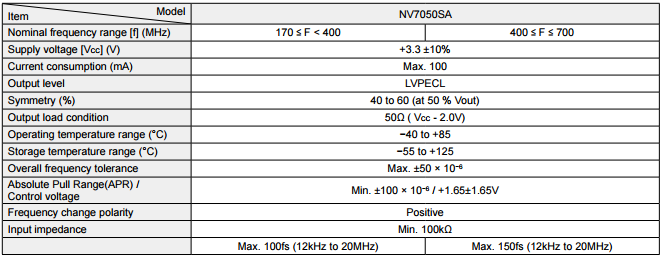 | 7 x 5.0mm ceramic package, can be corresponding to 700MHzWide variable range: absolute frequency variable range (APR) Min. 100 * 10-6