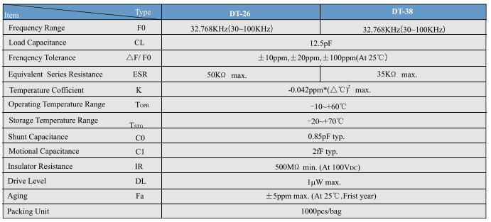 产品特征:音叉型水晶振动子手表用为首,产业机器民生、家电产品手表(功能)用振动子和广泛使用您的低功耗的振动子。